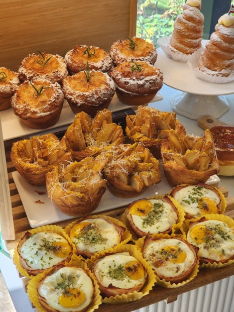 빵은 전부 당일 생산·당일 판매 원칙을 고수하며, 크루아상과 페스츄리류는 특히 겉바속촉의 정석!